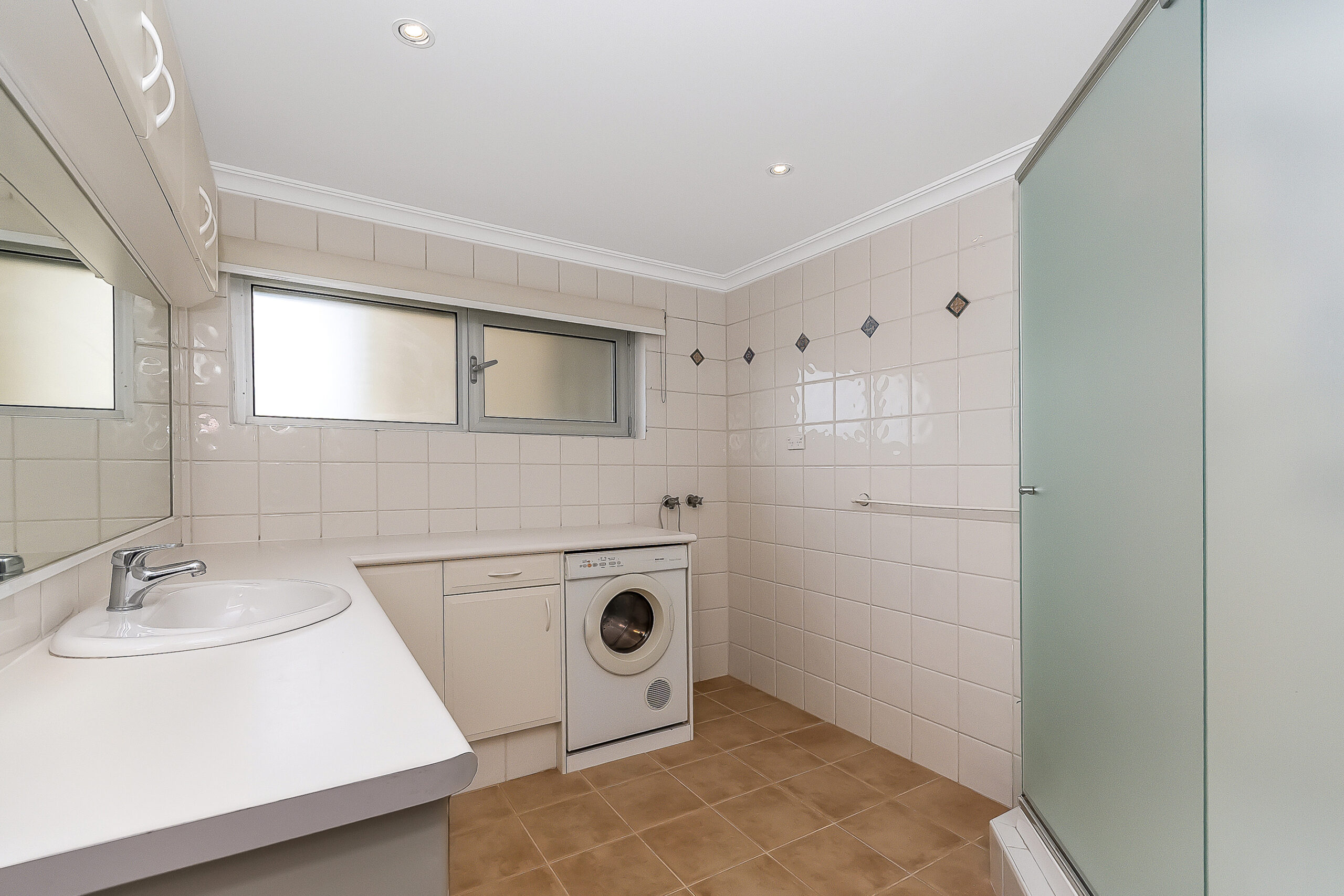 • Oversized light and bright bathroom with combined laundry